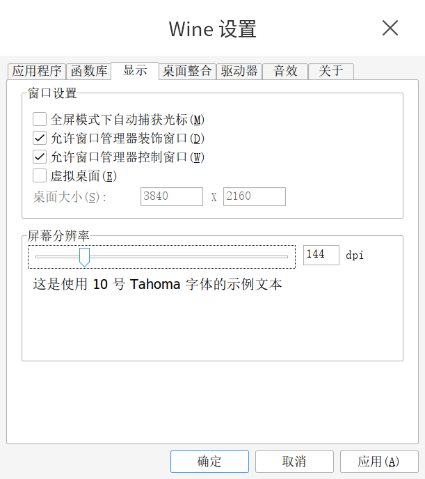 proxychains -q winetricks cjkfontsWine 设置,应用程序可以切换Windows 版本,显示-屏幕分辨率调大以适应本机分辨率。